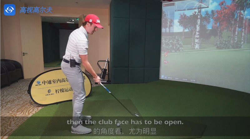 桿面打開的狀態(tài)擊球時球會偏右,解決方法是下桿時從里向外揮,簡單地轉(zhuǎn)一下自己的手臂。