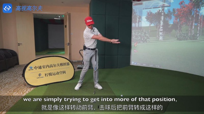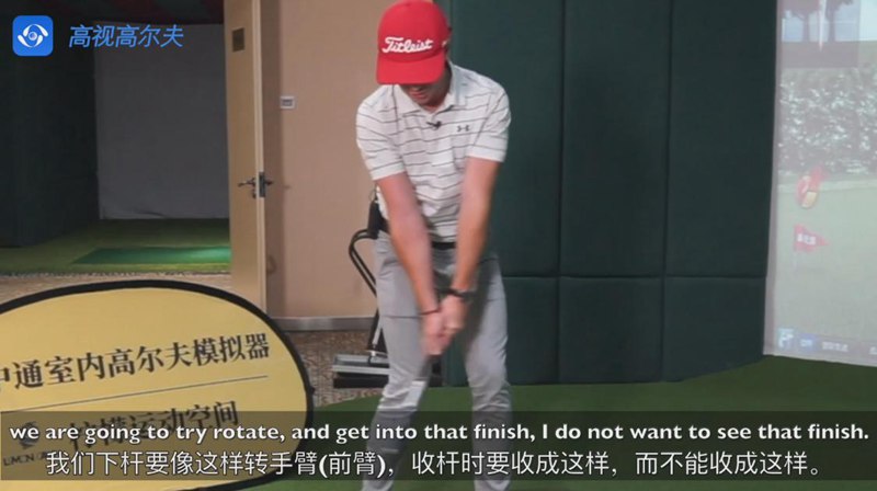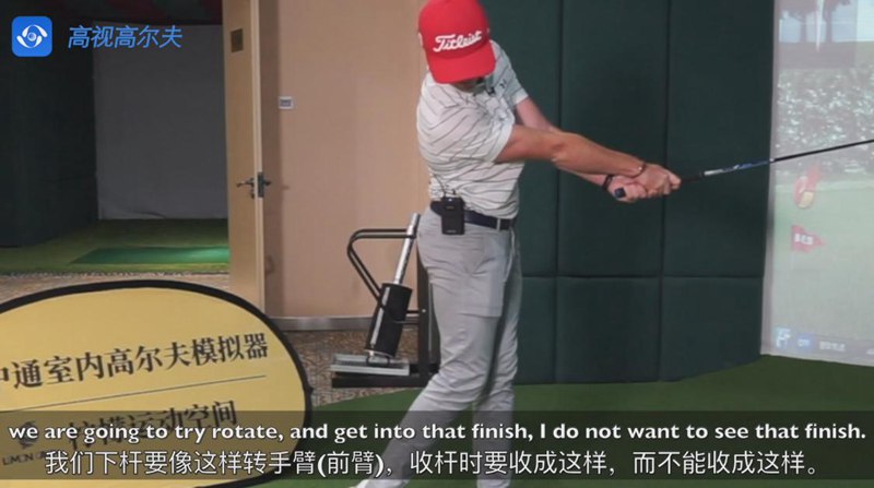 室內(nèi)高爾夫與一桿進洞高爾夫?qū)W院PGA職業(yè)選手諾埃爾教練合作錄制教學(xué)視頻。