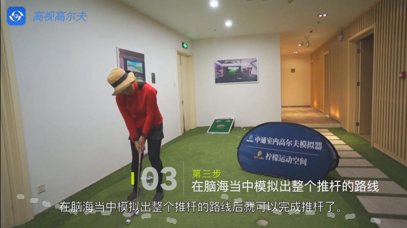 第三步,看一下球和球洞之間的線路,在腦海中模擬出整個推桿路線,完成推桿。
