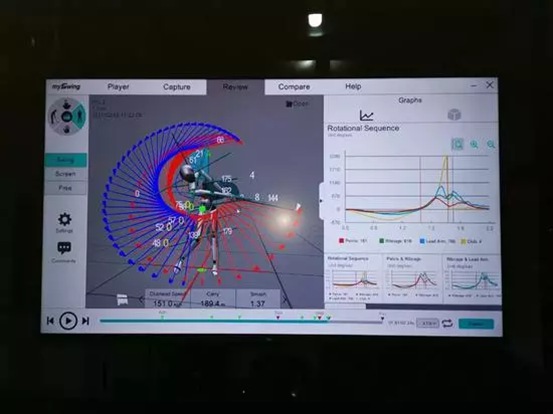 全揮桿動(dòng)作捕捉系統(tǒng)可以精確地捕捉球員全身的動(dòng)作及球桿的運(yùn)動(dòng)軌跡,并進(jìn)行實(shí)時(shí)的回放分析。通過3D模型可以從各個(gè)角度觀察分析球員的揮桿動(dòng)作,隨心所欲地研究其速度和角度數(shù)據(jù),并將其與技術(shù)更高的職業(yè)球手的揮桿數(shù)據(jù)進(jìn)行比對。PGA Top 100教練中超過70%都已經(jīng)在使用該系統(tǒng)。