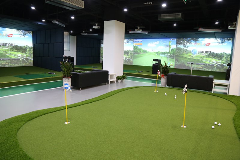 學(xué)院裝有中通高爾夫模擬器,室內(nèi)室外相結(jié)合,相輔相成。