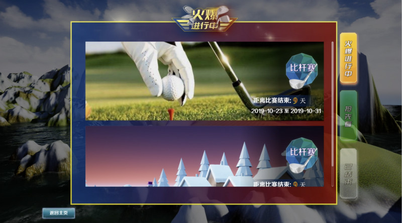 眾多中國知名真實3D球場,標(biāo)準(zhǔn)競標(biāo)賽球場北京華彬尼克勞斯球場、林克斯球場蘇州金雞湖國際高爾夫、山地球場通盈·雁棲湖高爾夫球場等各大球場暢打無憂。球場每周持續(xù)增加,一鍵更新,酣暢體驗。