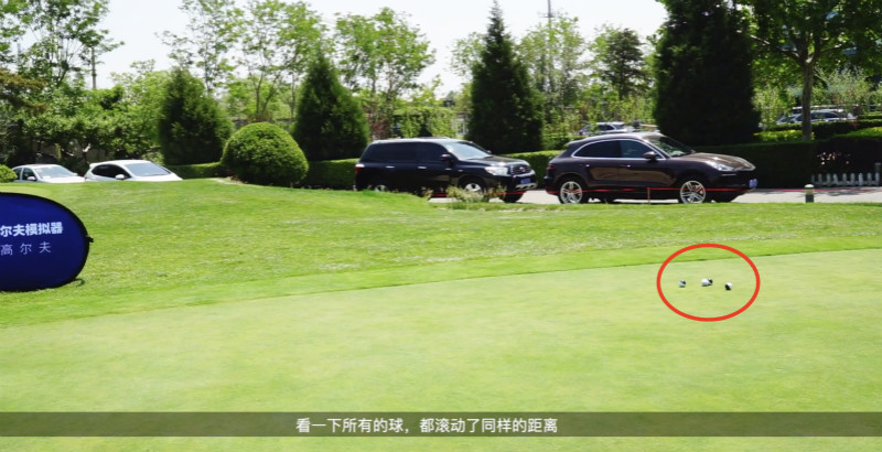 教練說(shuō):練習(xí)時(shí)不需要把球推進(jìn)球洞,只練習(xí)距離控制,等到下場(chǎng)推桿時(shí)會(huì)非常有用。